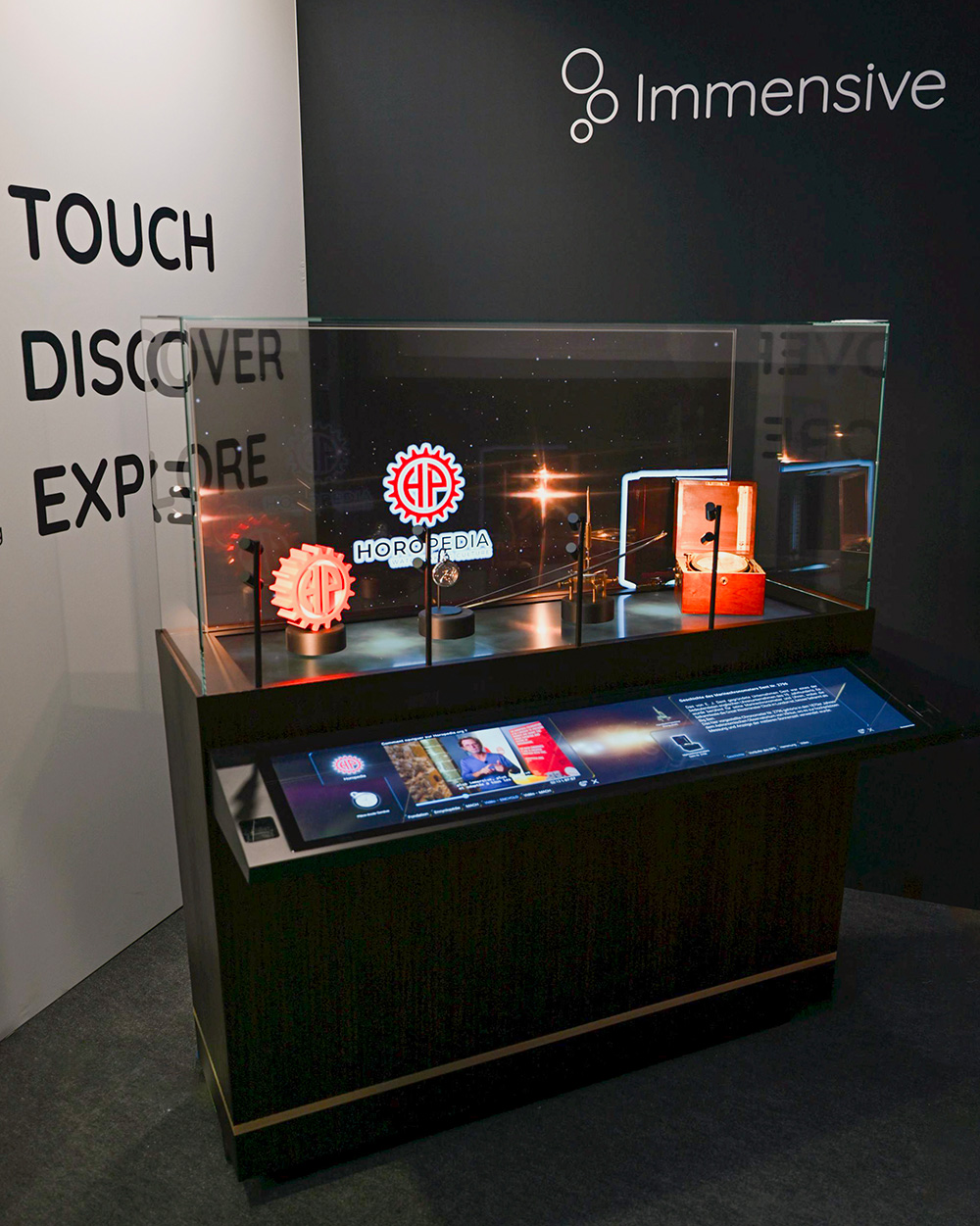 Cette installation offre un premier aperçu des technologies et des dispositifs que nous développons pour la Maison des Arts & de la Culture Horlogère (MACH).